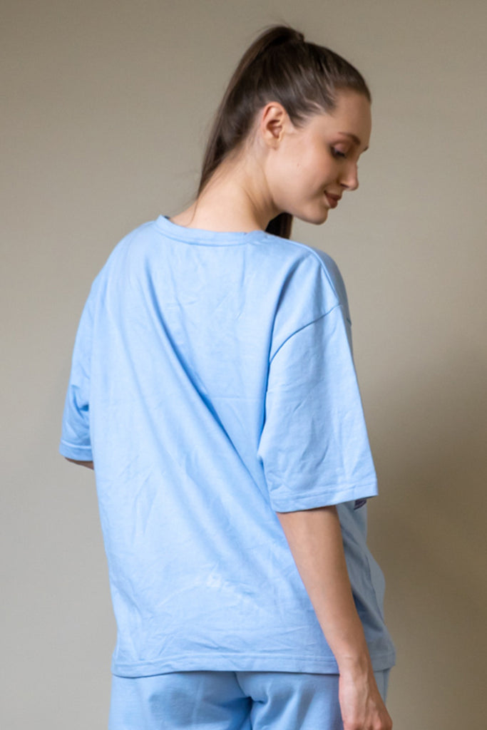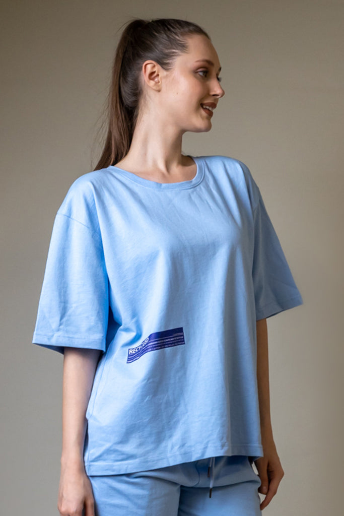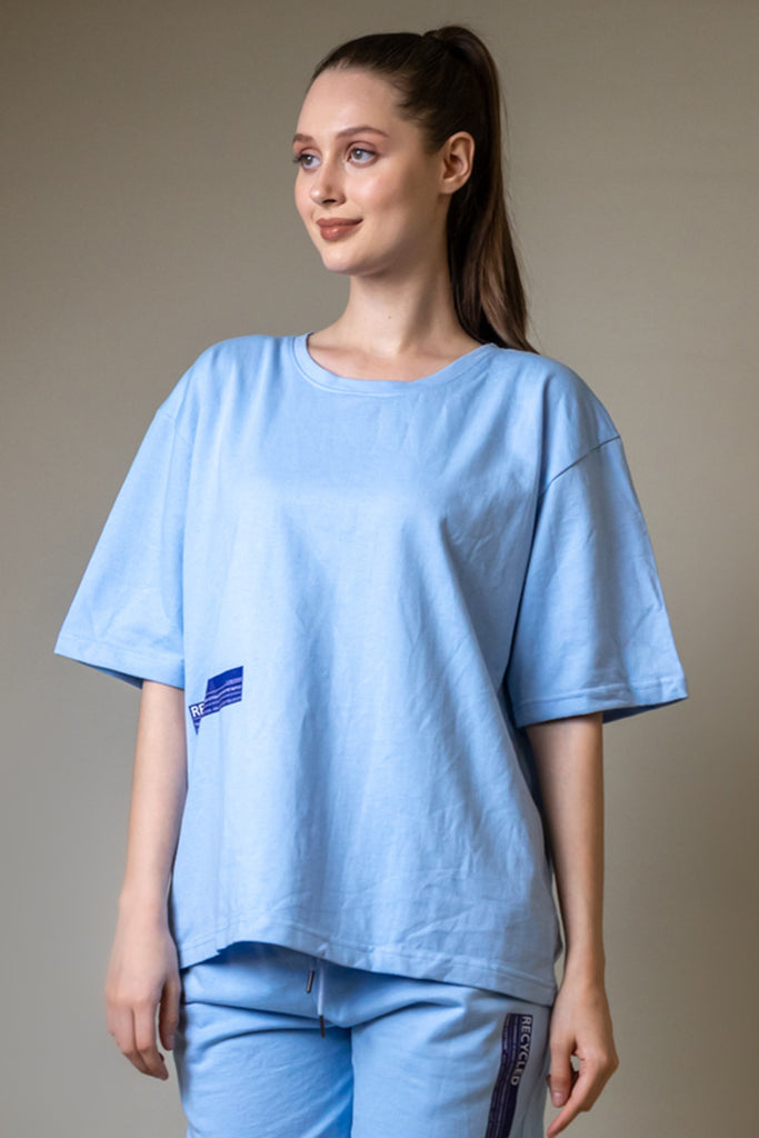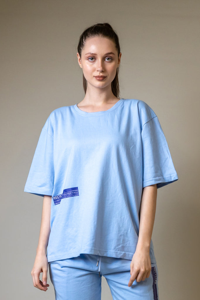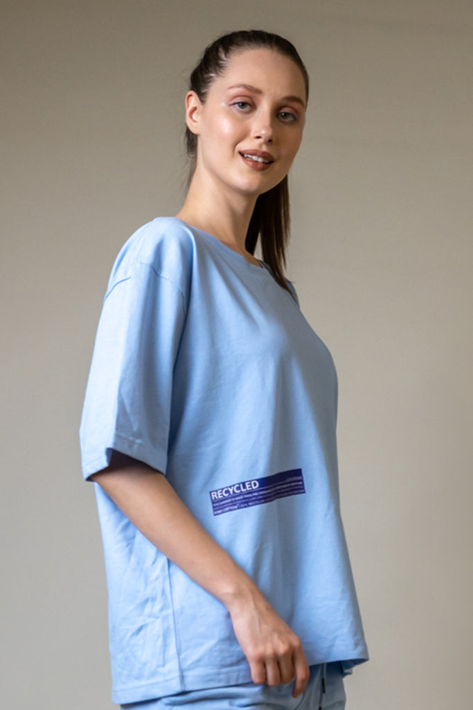 The Tranquil Sky Blue Oversized T-Shirt For Gurls - a very cool, absolutely funky, made-to-the-groove t-shirt. Be it a hip hop party, skateboarding sorta day, or a biker ride out - this oversized t-shirt is the one! This is designed to be suitable for all sorts of weather, which makes it multi-functional. The Tranquil Sky Blue Oversized t-shirt is made of 60% recycled cotton fabric of 240 GSM. The oversized baggy-fit t-shirt is the perfect baggy style to pick for a lazy day. The oversized t-shirts can be clubbed up with a pair of joggers from the Blue Street collection, or anything that comforts you.