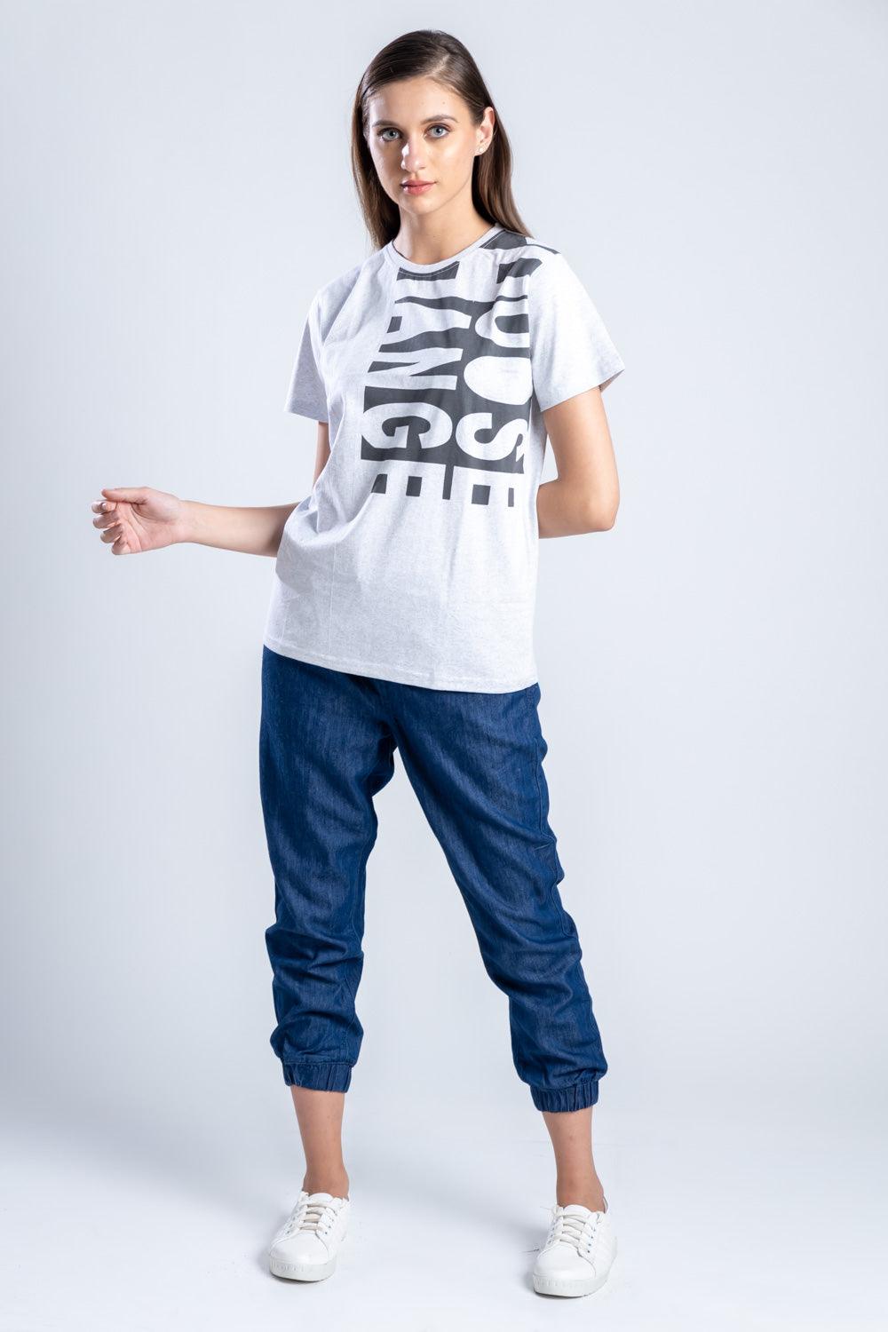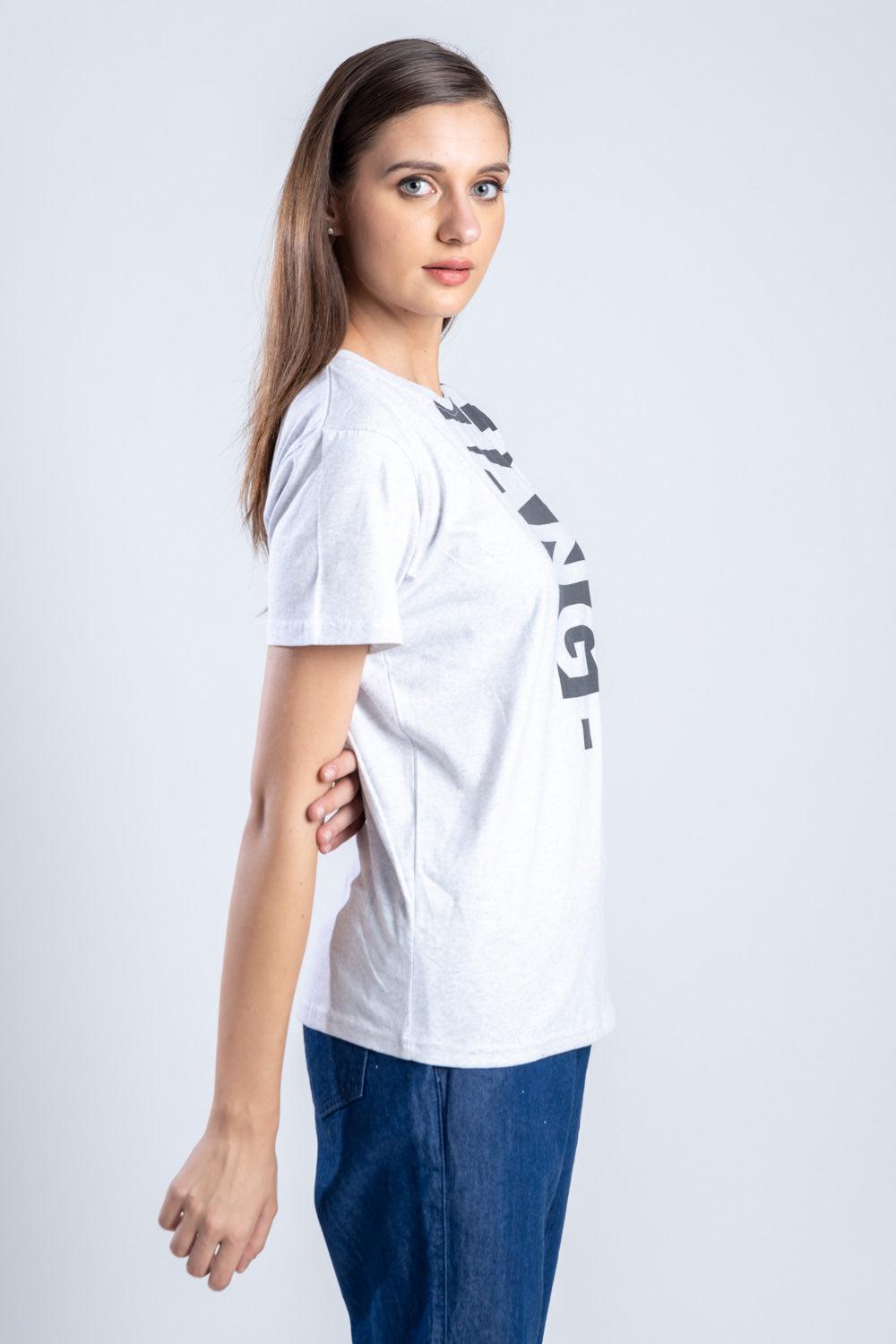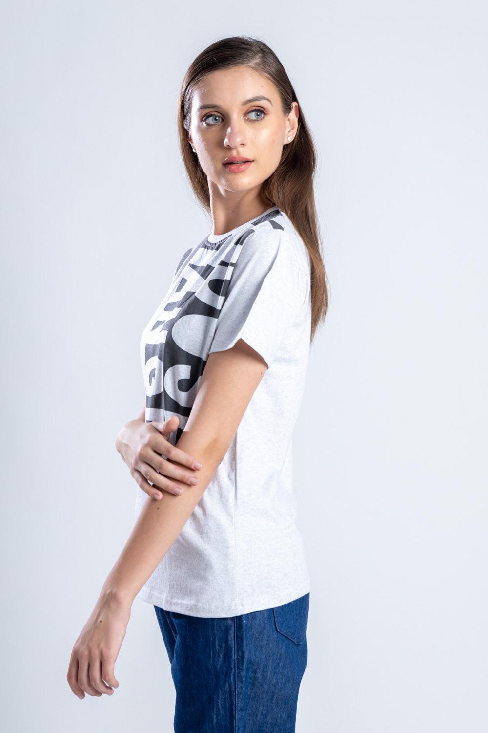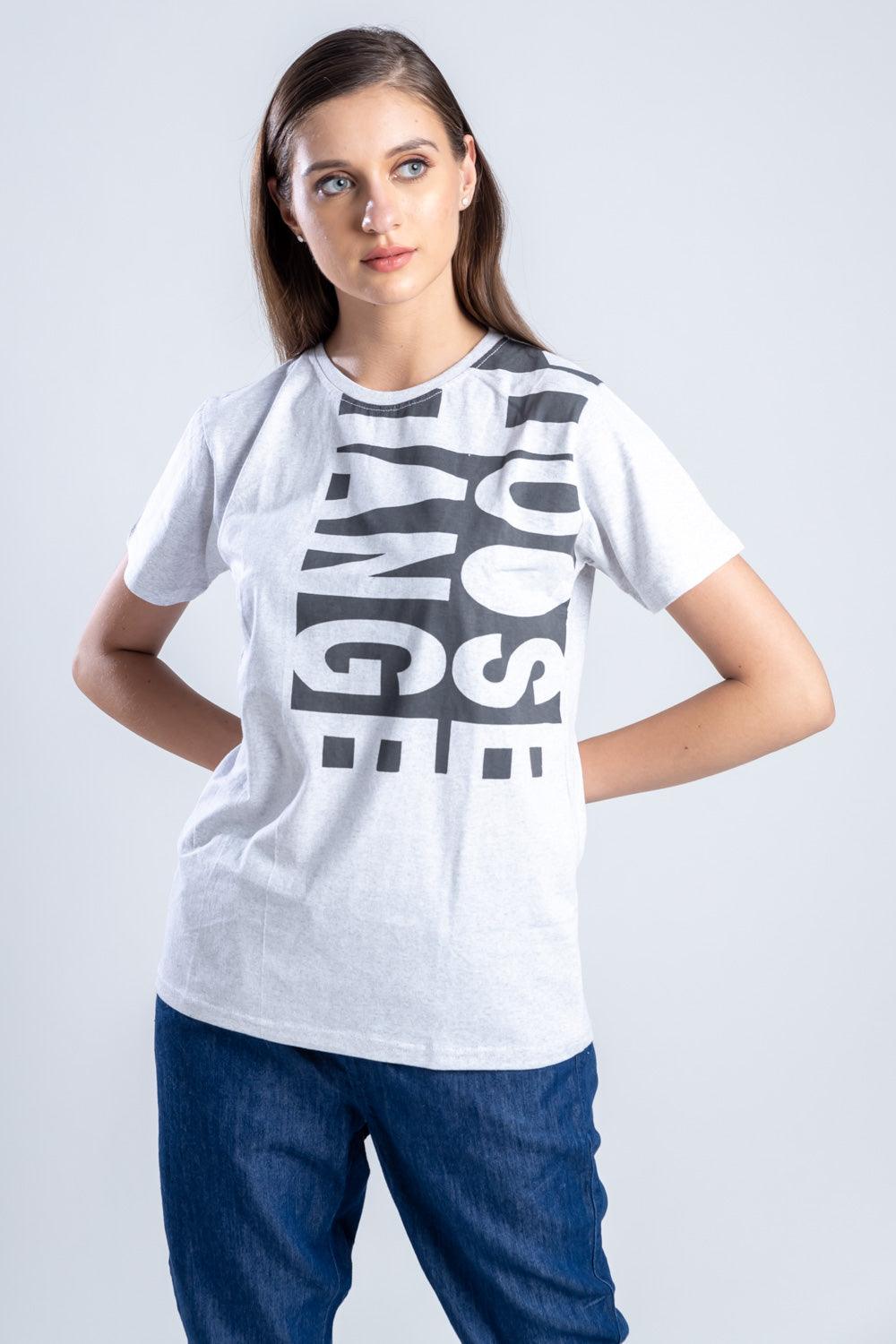 Give your closet a playful twist with this peaceful white hued t-shirt. The exuberating design makes an important statement urging us to choose the change. Take positive steps towards saving the blue planet by damage. Pick this recycled t-shirt made out of plastic bottles and kind cotton. Perfect for a casual day out in the sun.