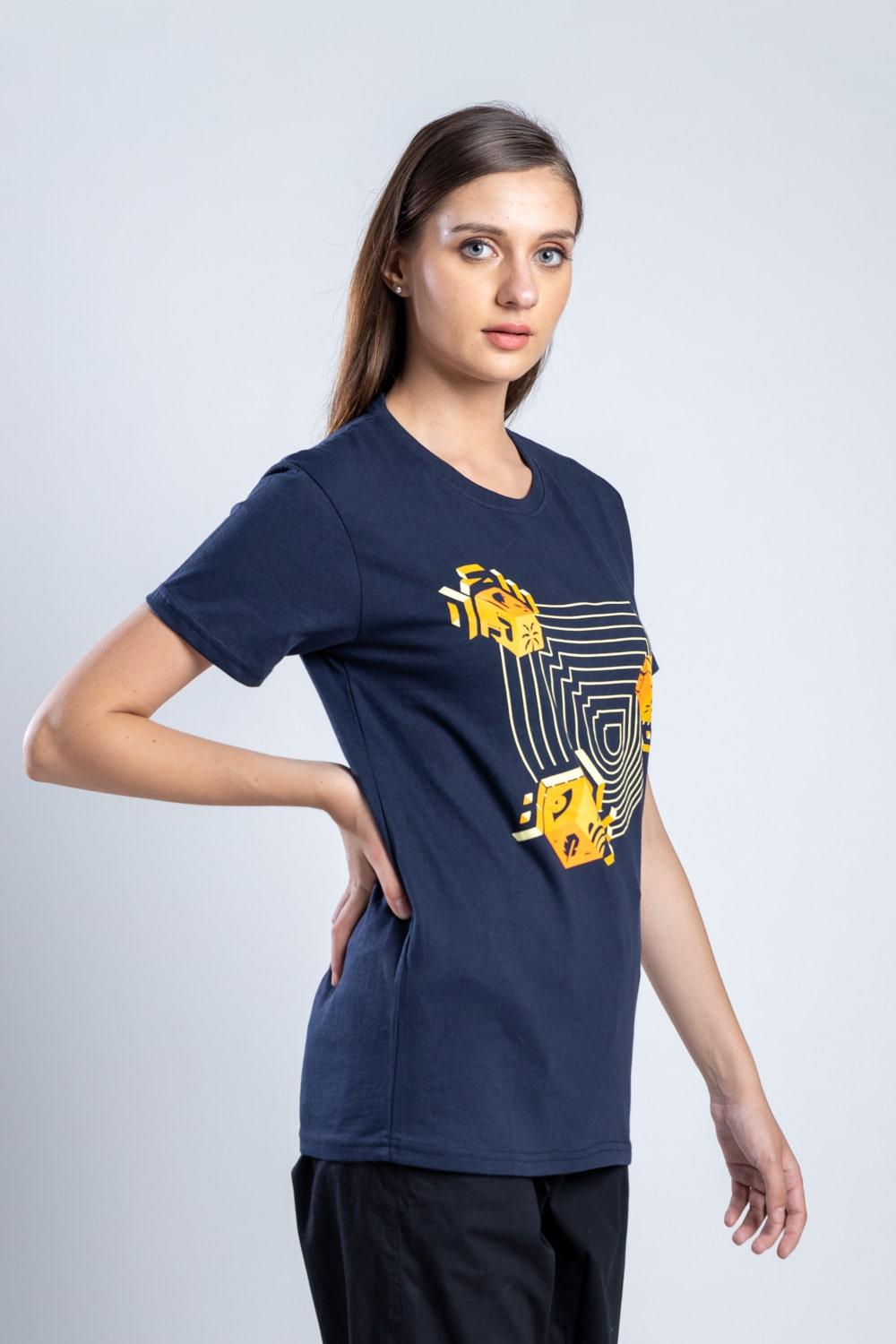 Slay the day in this navy colored Tee. Classic and minimal, this versatile number comes with a design that explores hidden gems of this planet. With a message to protect it from the damage caused by the waste. You can do both by choosing this highly versatile t-shirt made out of recycled plastic bottles.