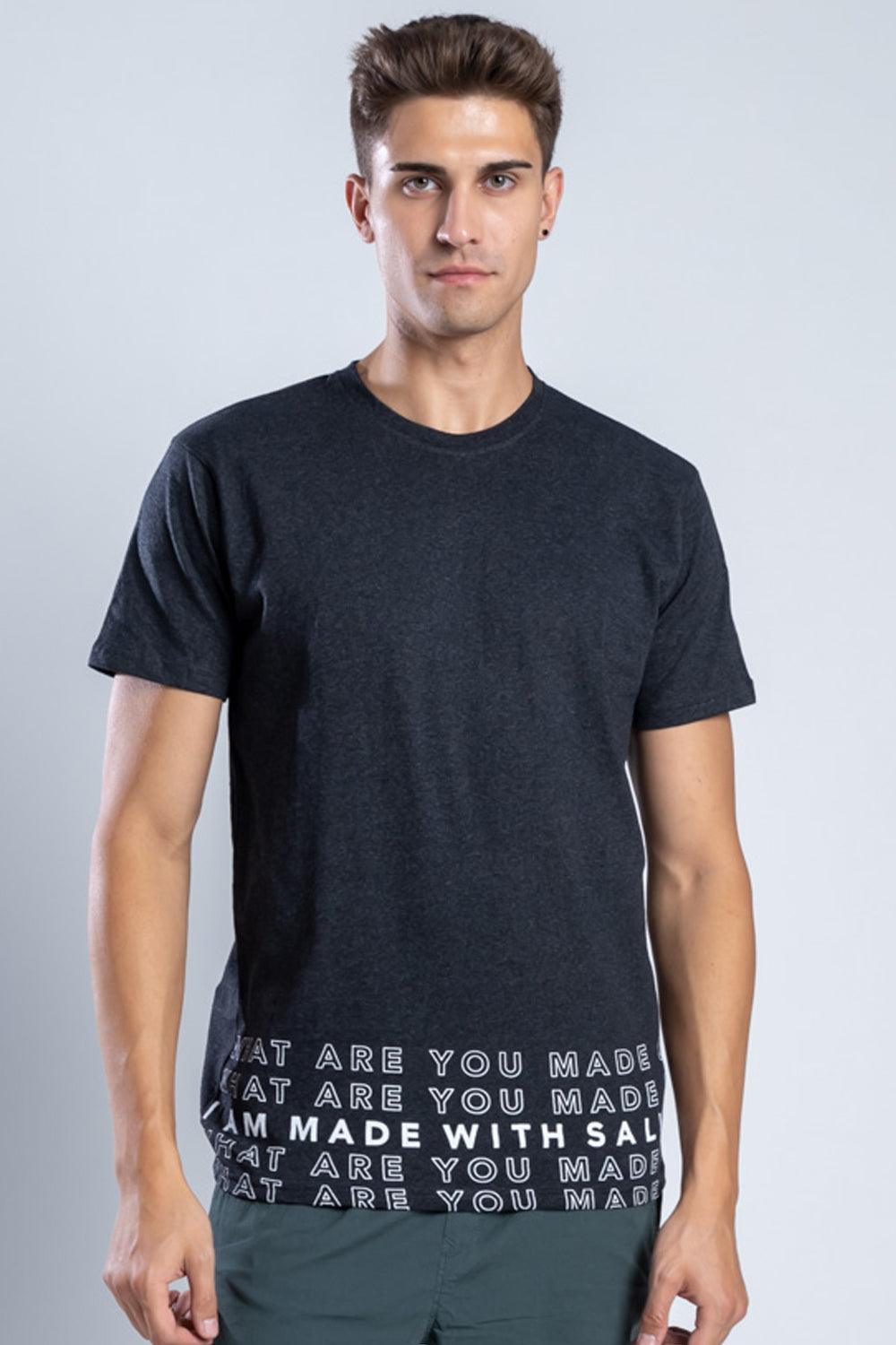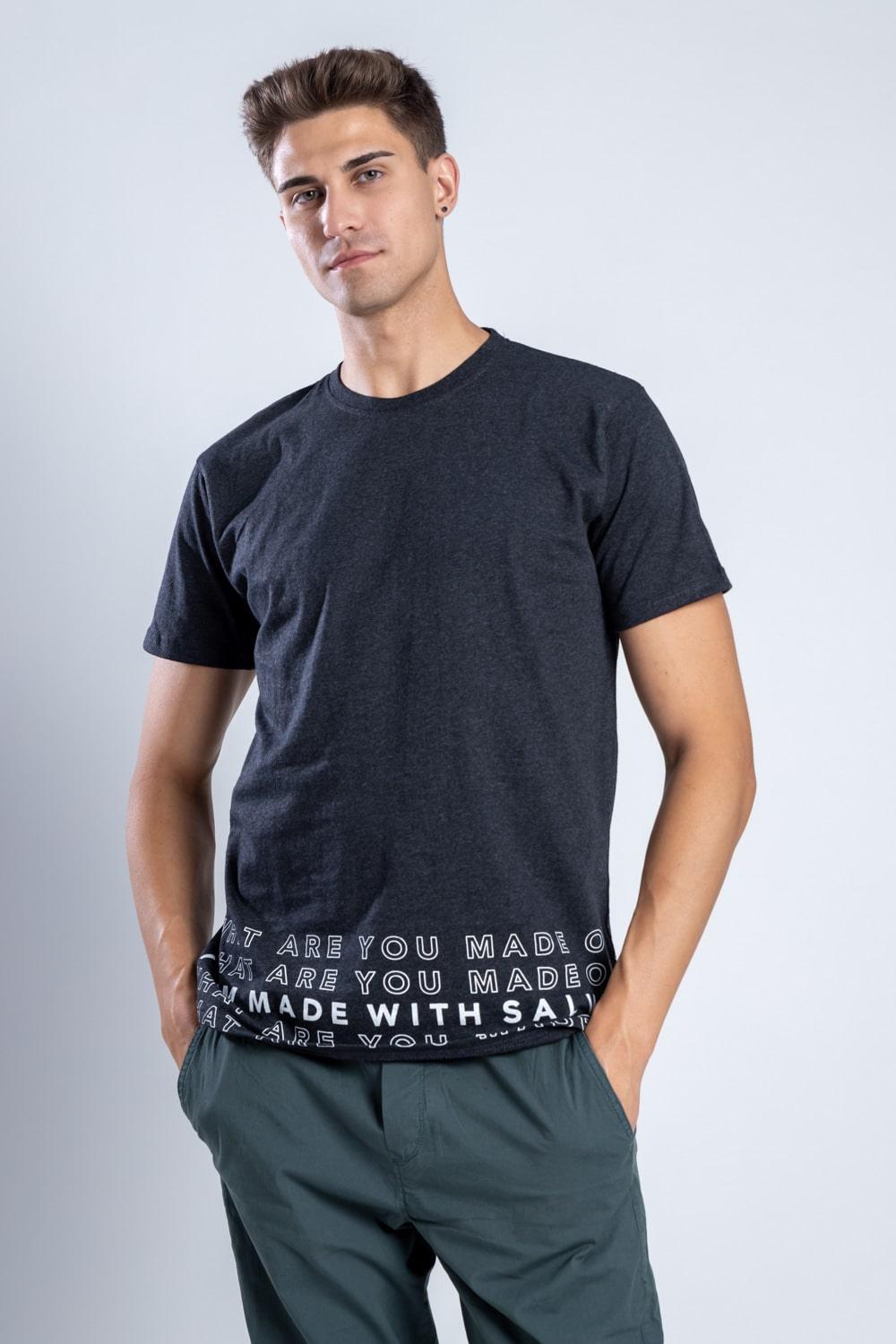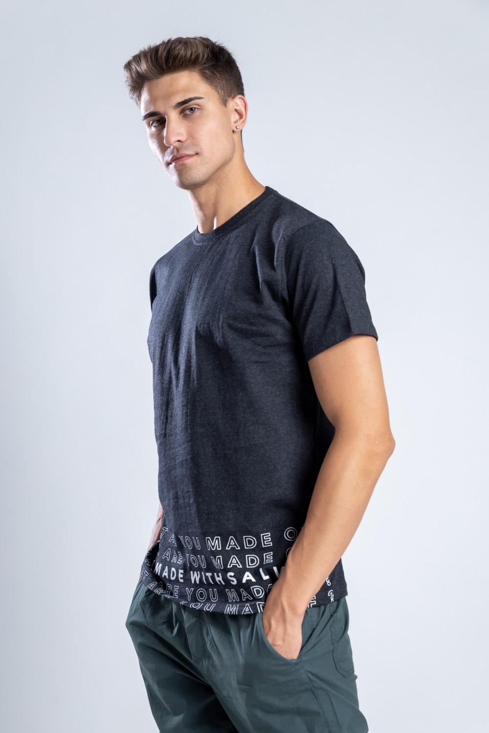Give your wardrobe a powerful update with this charcoal black Tee. Classic and fail-proof, it is tailored in a comfiest recycled cotton. The design makes a statement, while asking us to find innovative solutions for sustainable living. Pick this recycled cotton t-shirt with a pertinent question, will you stand by the only planet with life?