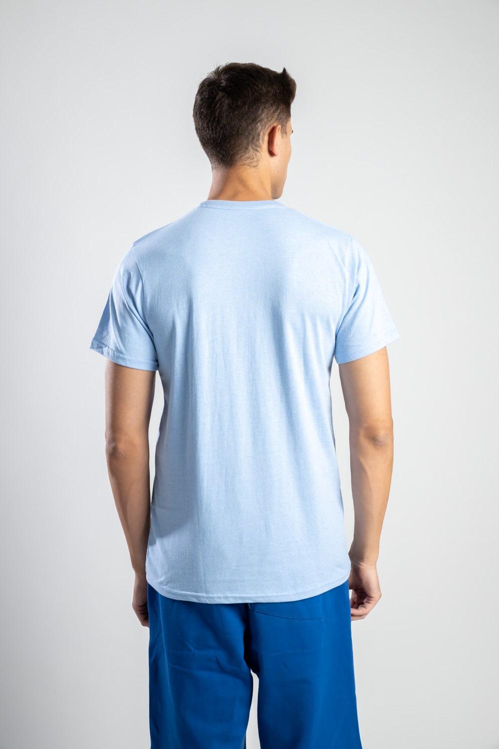 Subtle and sophisticated, this sky blue tee makes for a winner of a conscious look. The design is inspired by four elements: Fire, Water, Earth, and Air of this universe. Made from recycled plastic bottles and recycled cotton, it defines what we are made of and our responsibility towards mother Earth. Perfect for casual outings or fun-fridays at your workplace.
