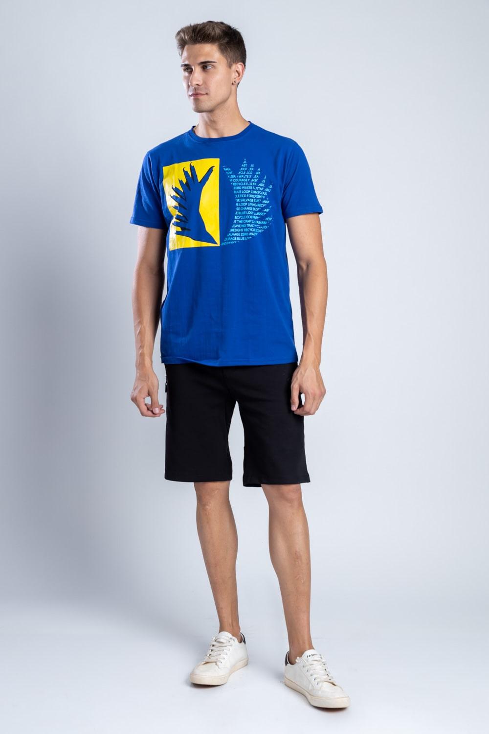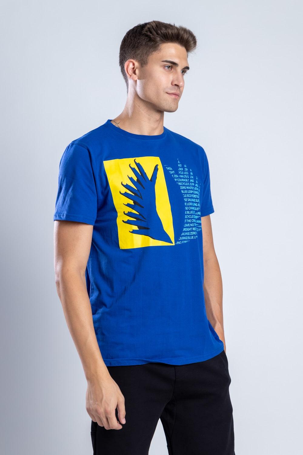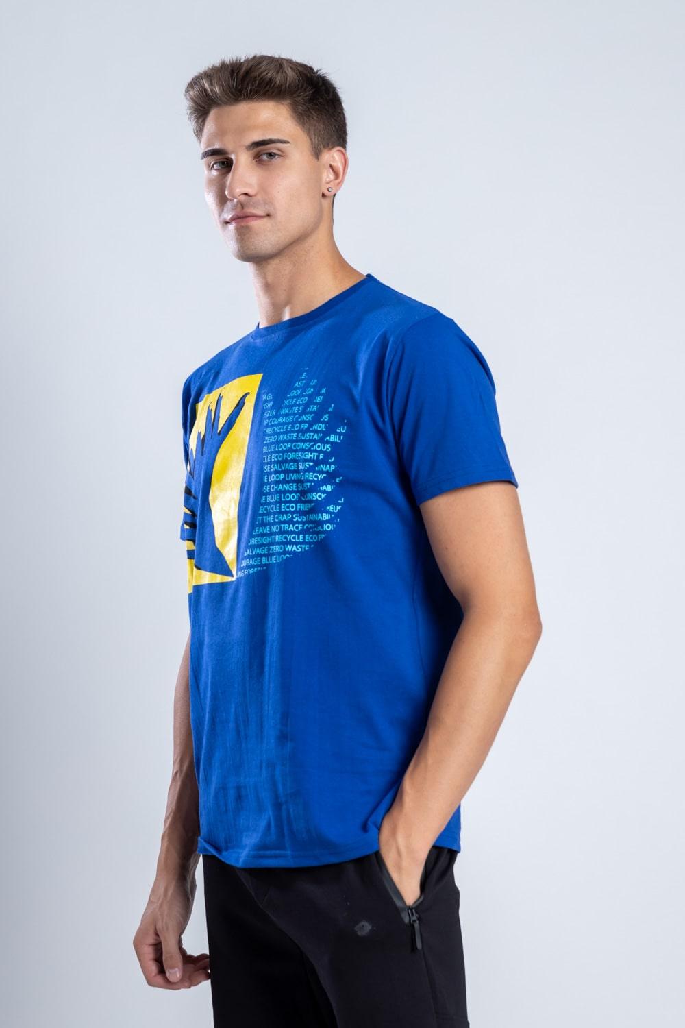 Add this iconic royal blue tee to your going-out wardrobe. Featuring an eclectic design forming illusionary wings with words that carry the vision to sustain and thrive in the long run. Empower this idea of change by opting for this t-shirt made with soft recycled cotton and recycled plastic bottles.