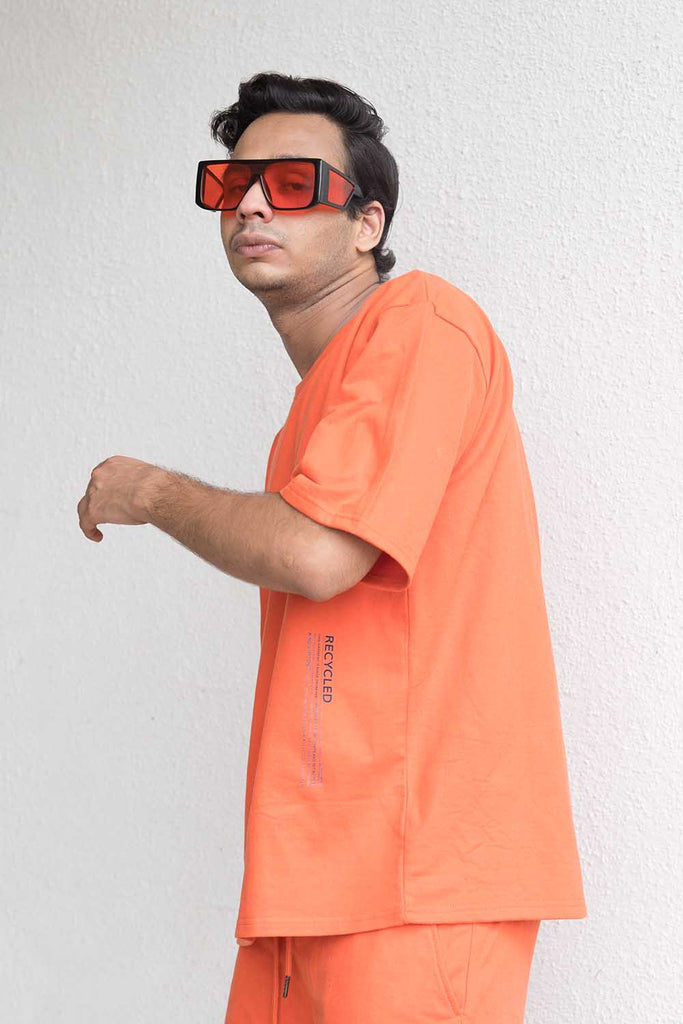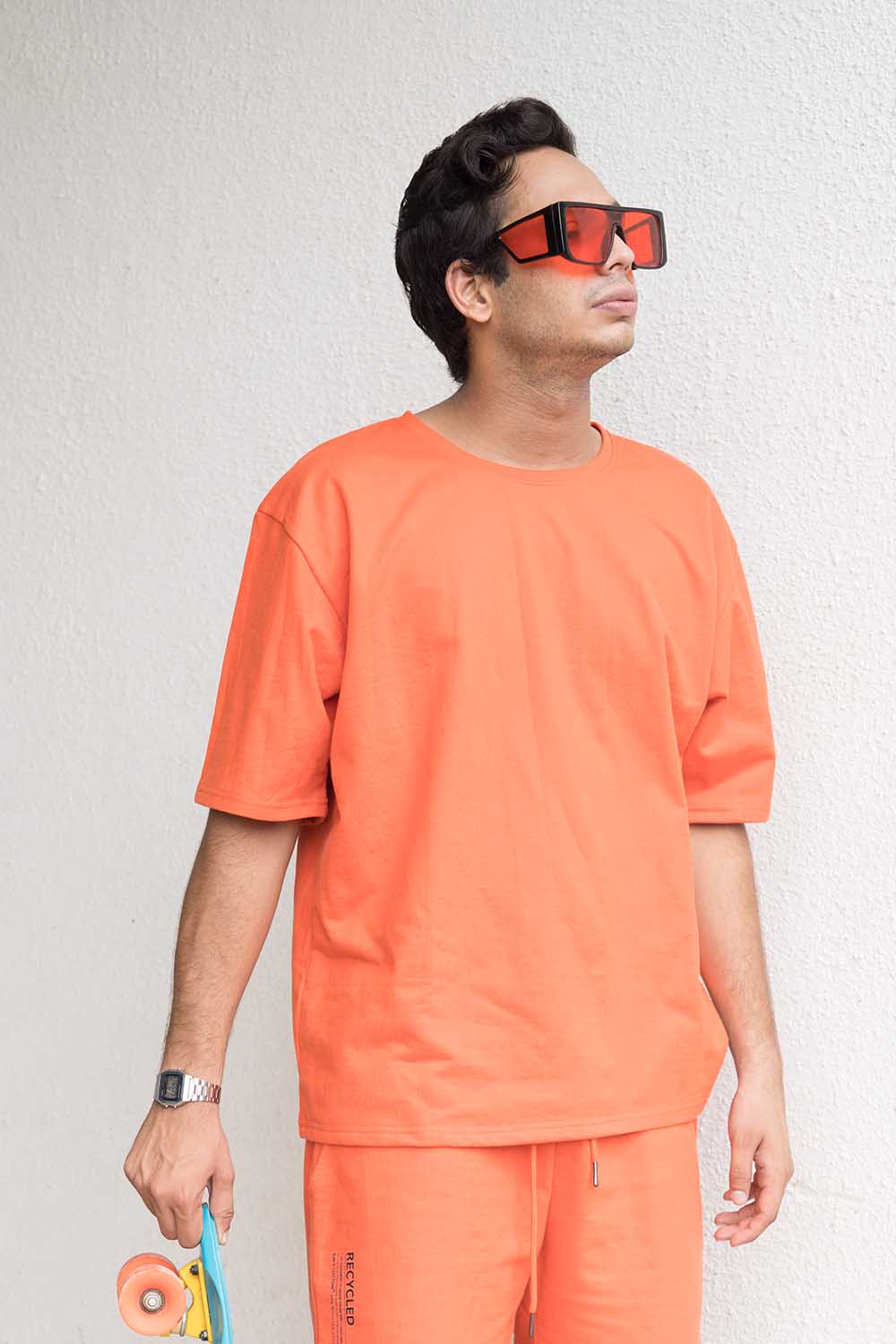The Tangerine T-Shirt For The Lads - a very cool, absolutely funky, made-to-the-groove t-shirt. Be it a hip hop party, skateboarding sorta day, or a biker ride out - this oversized t-shirt is the one! This is designed to be suitable for all sorts of weather, which makes it multi-functional. The Tangerine Oversized t-shirt is made of 60% recycled cotton fabric of 240 GSM. The oversized baggy-fit t-shirt is the perfect baggy style to pick for a lazy day. The oversized t-shirts can be clubbed up with a pair of joggers from the Blue Street collection, or anything that comforts you.