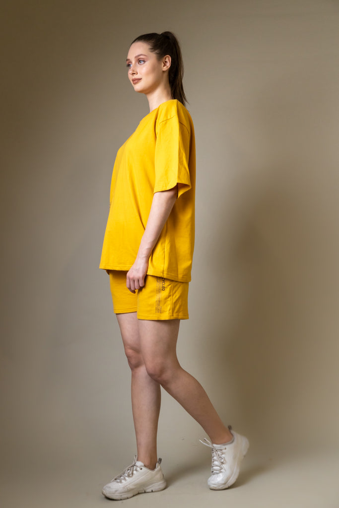 Introducing our Amber Oversized T-shirt Shorts Co-Ord set, the perfect addition to your wardrobe! This dynamic set includes an oversized t-shirt and shorts, both made with soft and comfortable cotton terry material. The black color adds a touch of elegance, making it an excellent choice for a wide range of occasions.