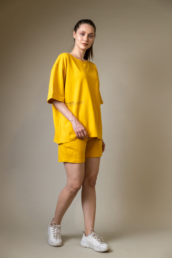 The Midnight Black Oversized T-shirt Shorts Female Co-Ord is not only stylish but also eco-friendly. Both the t-shirt and shorts are made with recycled cotton, making it a sustainable fashion choice. Upgrade your wardrobe with this must-have co-ord set that will soon become your go-to outfit!