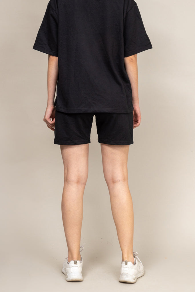 The Midnight Black Shorts For The Gurls - a pair of versatile shorts that is a must in your wardrobe. The dapper style of the shorts is multifaceted - suits one and all. The product is a go-to for any occasion, may it be a picnic, a house party, or a day at home. The shorts are made using 60%recycled cotton fibers that are spun into new fabric, it is made of 240 GSM - adding to the sustainability note! The apparel is designed to give a comfortable look and feel, the drawstring at the waist does the job. Pair it with any oversized t-shirt from the Dusk collection of your choice and you are good to go.