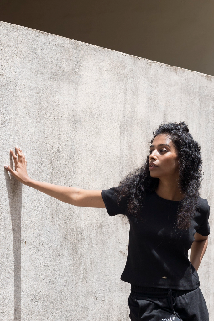 The Midnight Black Crew Neck-Ribbed T-Shirt For The Gurls is the only basic that you can blindly trust. Grab the Top, pull in your pants, and style with your favorite pair of sneakers. The ribbed t-shirt - a revolutionary fashion product, is an absolute no-brainer. Accessorize your look with an overcoat, a scarf, or anything you like - because everything's gonna look amazing! The t-shirt is constructed of 60% recycled cotton fabric of 240 GSM. The silhouette accentuates the short sleeves, the crew neckline, and added hem details. Visit the joggers from the Dusk collection to find the perfect coordinate. Grab yours soon!