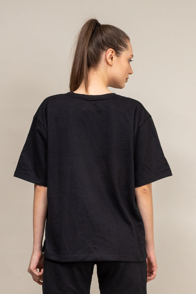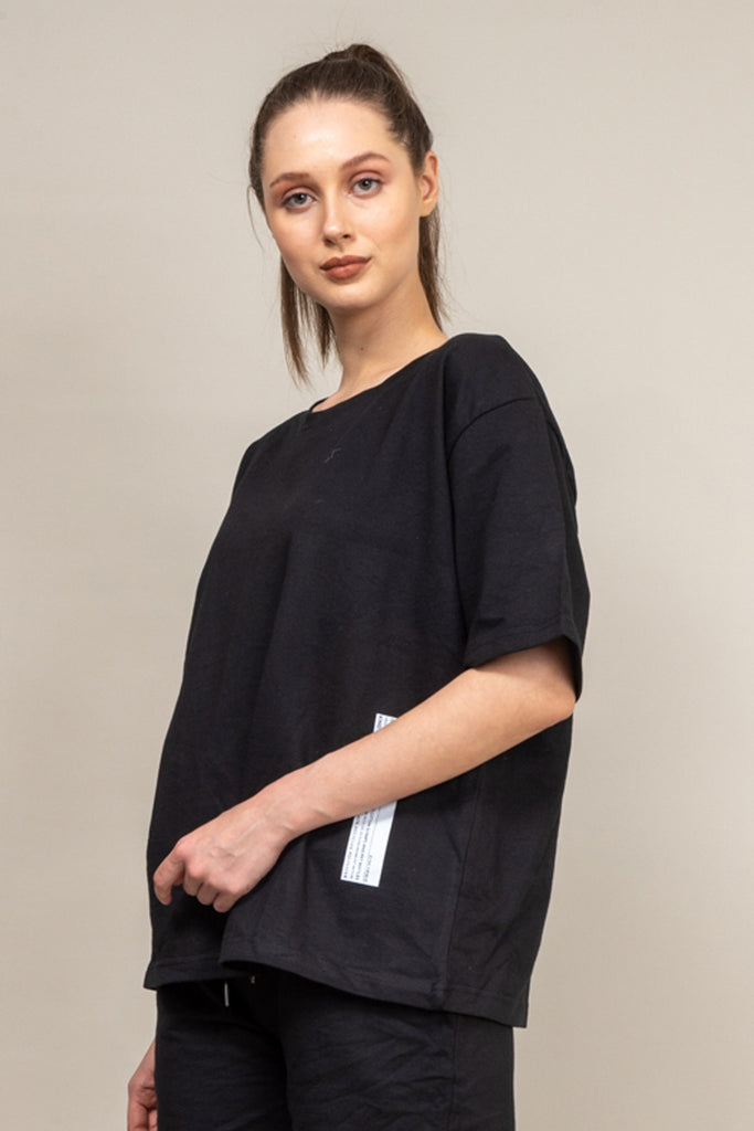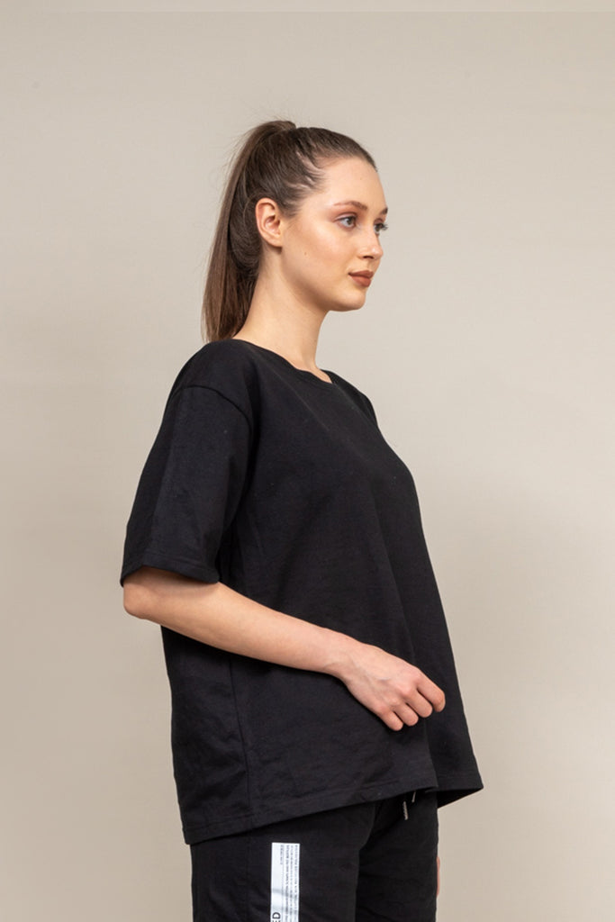 The Midnight Black Oversized T-Shirt For The Gurls - a very cool, absolutely funky, made-to-the-groove t-shirt. Be it a hip hop party, skateboarding sorta day, or a biker ride out - this oversized t-shirt is the one! This is designed to be suitable for all sorts of weather, which makes it multi-functional. The mid night black oversized t-shirt is made of 60% recycled cotton in a fabric of 240 GSM. The oversized baggy-fit t-shirt is the perfect baggy style to pick for a lazy day. The oversized t-shirts can be clubbed up with a pair of shorts from the Dusk collection, or anything that comforts you.