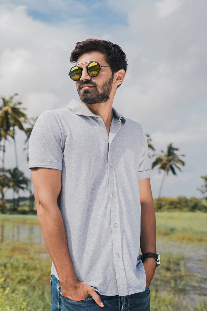 A basic T-shirt with finely stitched collar, is all set to give you a modish look.